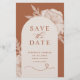 Save the date! Announce your wedding date to family and friends with this customisable save the date announcement card. It features botanical line art illustration and classic typography. Personalise this floral save the date card by adding your own names, date, venue and other details. This boho save the date card is perfect for fall weddings and boho-themed weddings.