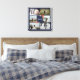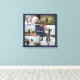Beautiful canvas print featuring a collage of six wedding photos. The collage is navy blue and decorated with illustrations of charming, bohemian flower bouquets. Add your wedding photos, and add your name in a charming calligraphy script.