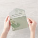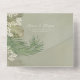 This design features a boho modern simple destination an elegant seal and sends with a modern QR code website online, scannable URL scan guest information, an elegant seal and send, trifold tri fold budget wedding, green tropical leaves leaf, botanical beach ocean coastal, with watercolor sage lime greenery foliage, elegant simple minimalist minimal, a rustic classic calligraphy script font and photo placement for lovely couple picture.