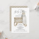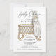 An elegant bamboo wicker modern boho style baby crib gender neutral baby shower invitation. Simple elegance. Neutral sepia beige tomes on white. Serene muted colour scheme. The reverse side of the invite has a white heart pattern.