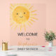 This cute baby shower welcome acrylic sign features a smiling yellow watercolor sun. Easily customisable. Original Watercolor © Michele Davies.