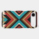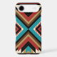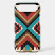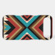A Southwestern-inspired geometric pattern featuring striking diamond and chevron shapes in turquoise, deep red, black, and warm neutral tones. This symmetrical design draws inspiration from bohemian textiles, creating a timeless yet modern look.