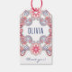 Boho style name tag design with flowers and swirls, with a vintage flavour.