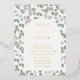 This elegant eucalyptus wedding invitation features delicate watercolor greenery framing the design, paired with luxurious gold foil style typography for a timeless and sophisticated finish. The bride and groom’s names are highlighted in shimmering gold-effect lettering, beautifully complemented by soft muted green leaves and subtle blush berry accents. Perfect for garden weddings, rustic venues, vineyard celebrations, or elegant outdoor ceremonies, this botanical invitation blends natural charm with modern refinement. Ideal for couples seeking a greenery wedding theme with a touch of gold elegance.
