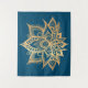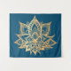 Boho Gold Lotus Flower Mandala Art Blue Tapestry