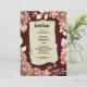 Boho flowers Thanksgiving Dinner invitation in warm and welcoming colours. The Dinner invitation is on an «old looking» paper with an old fashion font and an ornament on the bottom. The edges is coveret with obo flowers and leaves in earty colours.