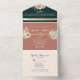 Celebrate your love with this elegant boho all-in-one wedding invitation, blending modern charm with rustic floral beauty. Featuring a warm terracotta and deep green colour palette, the design is adorned with delicate blush and ivory watercolor flowers, dried pampas grass, and a romantic gold rope heart. The back includes space for RSVP details and additional wedding information, while the front highlights your names in handwritten script. Perfect for fall, bohemian, rustic, or desert-inspired weddings.