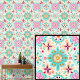 Boho Green Aqua Pink Flowers Abstract Floral Wallpaper