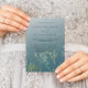 Boho Green Blue & Yellow Pressed Foliage Wedding Invitation