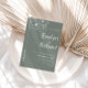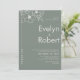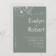 This boho green destination floral formal wedding invitation is perfect for a classic wedding. The design features watercolor apple blossoms and flowers in a green background.