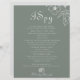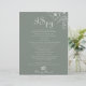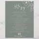 This boho green destination floral i spy wedding game is perfect for a rustic wedding. The design features watercolor apple blossoms and flowers in a green background.