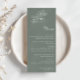 This boho green destination floral wedding menu card is perfect for a rustic wedding. The design features watercolor apple blossoms and flowers in a green background.