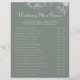 This boho green destination floral wedding shoe game is perfect for a rustic wedding. The design features watercolor apple blossoms and flowers in a green background.