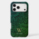 Boho Green Floral Gold Monogram Phone Case. Monogram is an elegant gold serif font and your name is a white sans serif font.