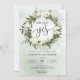 Boho Green Olive wreath white roses she said yes engagement party invitation,