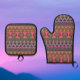 Bring bold, bohemian vibes into your kitchen with the *Boho Heat Guard Set*. This eye-catching oven mitt and pot holder combo features a vibrant tribal zigzag pattern in electric pinks, teals, golden yellows, and deep purples. It’s not just stylish—it’s functional, protecting your hands while adding a splash of global flair to your cooking space.