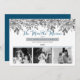 Boho three photo "The More the Merrier" blue and grey watercolor holly and berries floral holiday design. Simply add your photos. Add your family name, first names and the year on front and you are all set. Composite design by Holiday Hearts Designs (rights reserved).