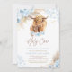 Boho Holy Cow Blue Pampas Grass Boy Baby Shower Invitation