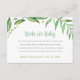 Custom printed book request cards to coordinate with our watercolor boho leaves baby shower invitation design. Use the design tools to customise the wording and edit the fonts and colours to create your own unique baby shower book request insert card.