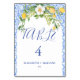 Boho Lemon Blue Mediterranean tile Italian Wedding Table Number