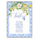 Boho Lemon Blue Mediterranean tile Italian Wedding Table Number