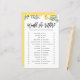 What would the mum-to-be rather do? Add this fun and playful botanical baby shower game card to your event. It features watercolor illustrations of lemons and greenery. You can personalise the card by adding back texts. This lemon would she rather baby shower game card is perfect for spring and summer showers.