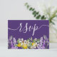 Rustic and boho RSVP card with large hand written style calligraphy in white on a purple background. Also featuring stunning Lemons and lavender painted in watercolor. Original artwork from the studio created for your special day. Fully editable text so you can easily remove or change/add words to suit your wedding plans.