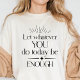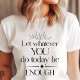 Find peace and encouragement with this boho-inspired "Let Whatever You Do Today Be Enough" shirt. Featuring a minimalist design with subtle geometric accents, this shirt is perfect for those who seek a reminder to be kind to themselves and embrace the present moment. The black-and-white palette adds to its versatility, making it a great piece for casual wear or as a thoughtful gift. Whether you're looking to inspire others or yourself, this shirt promotes self-acceptance and positive vibes. Wear it as a gentle reminder that you are always enough.