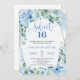 Boho light blue flowers eucalyptus silver sweet 16 invitation