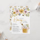 Welcome the arrival of a sweet bundle of joy with our charming Honey Bee boho baby shower invitation! Our design boasts a serene white background, adorned with the delightful phrase 'A little Honey is on the way!' Surrounding the invitation are delicate watercolor wild flowers and lush greenery, adorable honeybees fluttering about. The finishing touch is a lovely jar of honey and drizzle stick, adding a touch of elegance to this customizable party template. Our cottagecore golden tone palatte makes this invite perfect for celebrating in the spring or summer, and this theme is suitable for both precious little girls and boys. Don't miss out on buzzing about this sweet celebration!