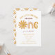 Our Little Sunshine is ONE, Boho First Birthday Invitation with smiley face sun and rainbow. Minimal simple boho colour palette sunshine 1st birthday party invite.