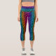 A vibrant swirling rainbow flower and leaf pattern on high quality capri leggings. These superior quality capri leggings feature a bold mandala inspired rainbow flower & leaf pattern on simple black. (This item is shown in black - but you can customise your own pair by choosing your background accent colour from a full rainbow of colours in the customise menu!) Perfectly paired with a blazer for day - or as unique and stylish workout leggings for a trip to the gym - these quality custom leggings are perfect for every occasion.