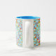 Bright rainbow coloured mug. This fun mug has a turquoise inside.