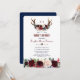 Boho Merlot Navy Blue Floral Antlers Sweet 16 Invitation