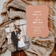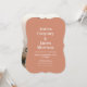 This personalised invitation template is fully customisable to suit any wedding theme, from a breezy beach ceremony to a chic late summer or fall celebration. Featuring a palette of cream, peach, coral, orange, rust, copper, and terracotta, this design captures the essence of a rosey sunset or citrus-themed event. It's perfect for those planning their nuptials during the warm and festive months of June, July, or August and embodies the spirit of boho disco weddings.