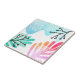 Boho style minimal ceramic tile features white lines, polka dots, leave line art and colourful blob shape.