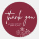 Boho Minimalist Burgundy Thank You Wedding Favour Classic Round Sticker
