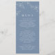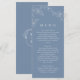 Present your wedding meal in style with this elegant dusty blue dinner menu card. This design features delicate white botanical line art paired with clean, modern typography for a refined boho look. The soft dusty blue background creates a calm and romantic feel, perfect for any wedding setting.