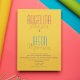 Minimalist, modern, boho yellow wedding invitation, with simple calligraphy script.