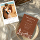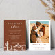 Bohemian desert themed terracotta wedding invitation in a minimalist style featuring an off white desert landscape image and the couples photo on the back.