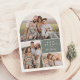 Make your Christmas cards stand out with this minimal boho design, featuring an arch-shaped photo collage with three of your favourite photos and a custom greeting. A sage green panel highlights your family name in elegant handwritten script calligraphy. The back features a fourth landscape photo with space for a personal message, perfect for a yearly recap or heartfelt holiday wishes to friends and family. Personalise these cards with family portraits, couple photos, or a favourite pet picture. Browse the collection linked on this page for matching items, or visit our store for more customisable holiday photo cards.