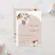 This invitation with modern arch contains floral designs and beautiful typography in neutral colours, including terracotta, beige, and earthy tones. Printed on high-quality cardstock, they will surely impress your guests and set the tone for your special day. Invitations are also available as a digital download, so you can send them through email or message apps.