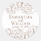 Elegant bohemian floral botanical wedding round sticker. Beautiful vintage line art of rustic mocha mousse peonies set on a classic white background with elegant but simple mocha mousse, light chocolate brown script and bold lettering. Add your names and wedding date. Perfect classic way to seal your Save the Date cards, Invitations, Thank You cards or use as favour stickers. Minimalist design with an elegant romantic rustic boho feel. If you need help making any changes please send me an email a desigsbykatz@gmail.com and I will be happy to help.