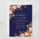 Boho Modern Navy Blue Burnt Orange Floral Wedding Invitation