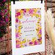 Welcome your guests with the vibrant charm of this boho-modern hand-painted floral welcome sign. The lively hues of purple, green, lavender, and yellow set the tone for a joyous celebration. Loose watercolor florals bring a natural and inviting feel, while glitzy faux gold glitter adds a touch of glamour to the occasion. The modern elegant script typography font maintains a sophisticated aesthetic, creating a stylish entrance to your bohemian-inspired event. This original hand-illustrated welcome sign warmly invites everyone to share in the festivities, setting the stage for a memorable gathering.