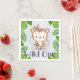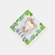 You will love this blue watercolor printed background with green palm leaves and a adorable boho monkey. Great for a first birthday party!