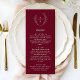 Boho Monogram Elegant Burgundy Wedding Dinner Menu