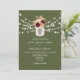 Elegant, chic, boho, watercolor floral, burgundy peach and green wedding invitation with photo, website and QR code for rsvp.