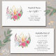 Boho Moon Crystals Feathers Flowers Crystal Cluster, Pink Watercolor Flowers, white feathers, Leaves with watercolor Crescent Moon Design Business Cards. Text ready for your info.