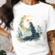 Experience the unique charm of our Boho Moon Maiden T-Shirt, designed with smart AI techniques. This distinct piece embodies harmony with nature, spirituality, and freedom with its intricate moon and maiden artwork.